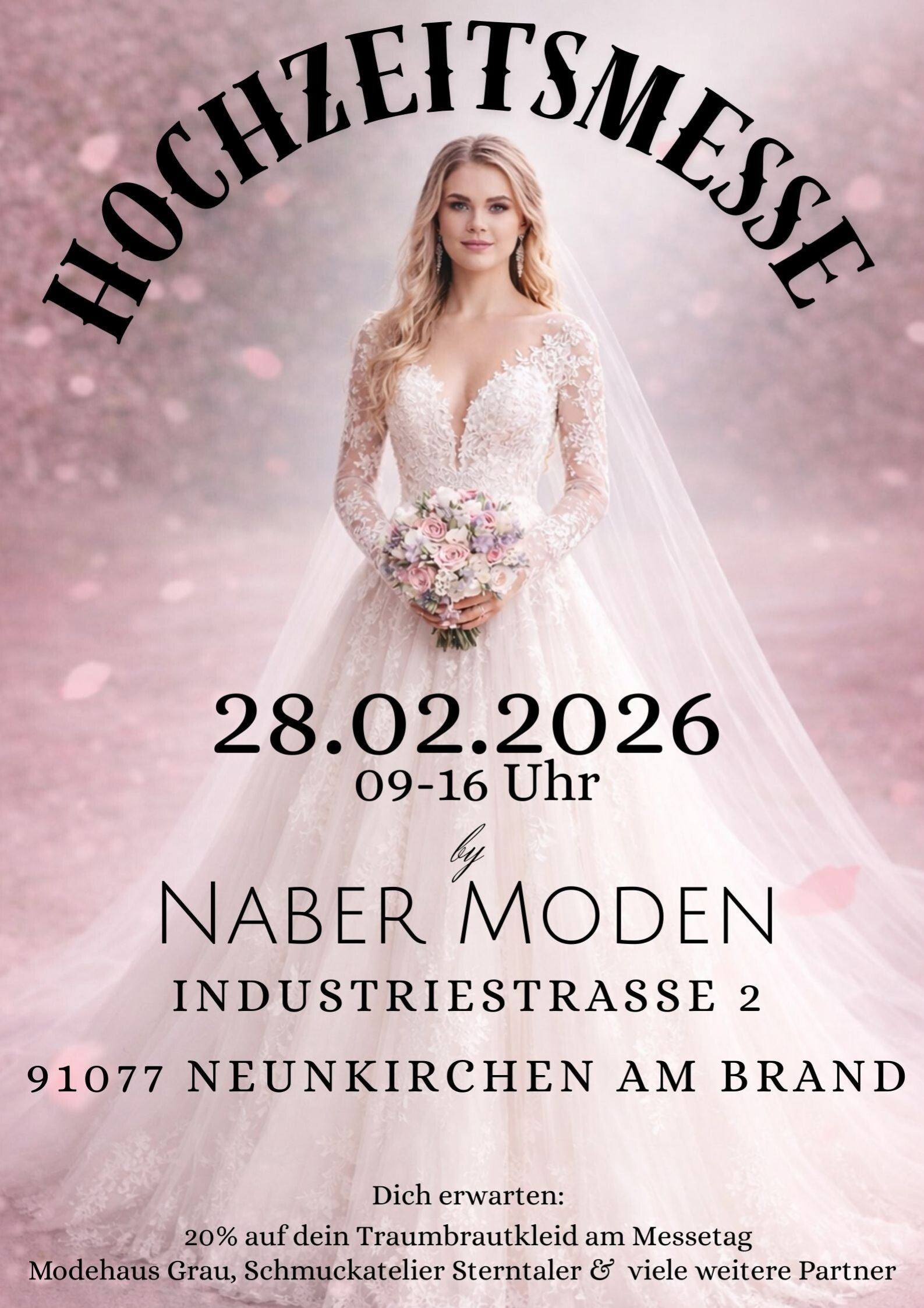 Außerdem gibt es 20% auf dein Traumbrautkleid am Messetag!